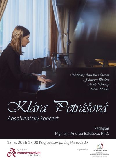 Absolventský koncert Kláry Petrášovej sa uskutoční 15. mája 2026 o 17:00 v Keglevičovom paláci na Panskej ulici v Bratislave .