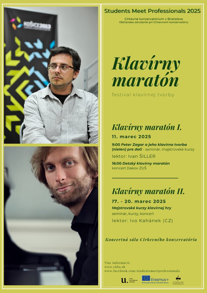 Majstrovské kurzy klavírnej hry sú určené študentom Cirkevného konzervatória. Ústrednou témou majstrovských kurzov bude sólová a komorná klavírna tvorba všetkých období. Aktívni účastníci absolvujú individuálne lekcie a na záver obdržia certifikát o absolvovaní majstrovského kurzu .