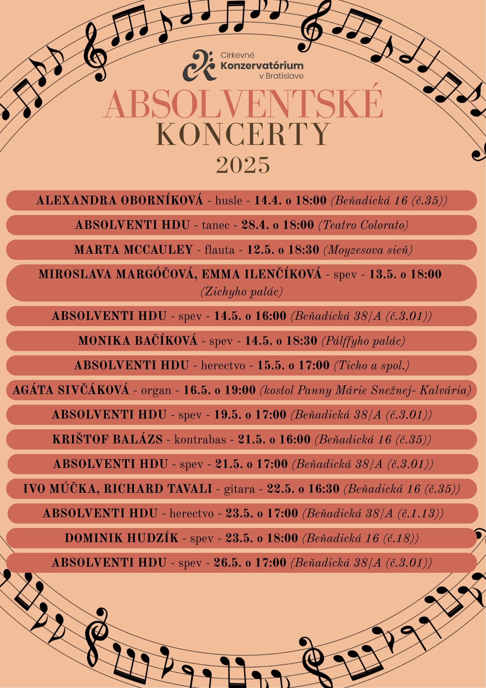 Absolventské koncerty žiakov šiesteho ročníka Cirkevného konzervatória.