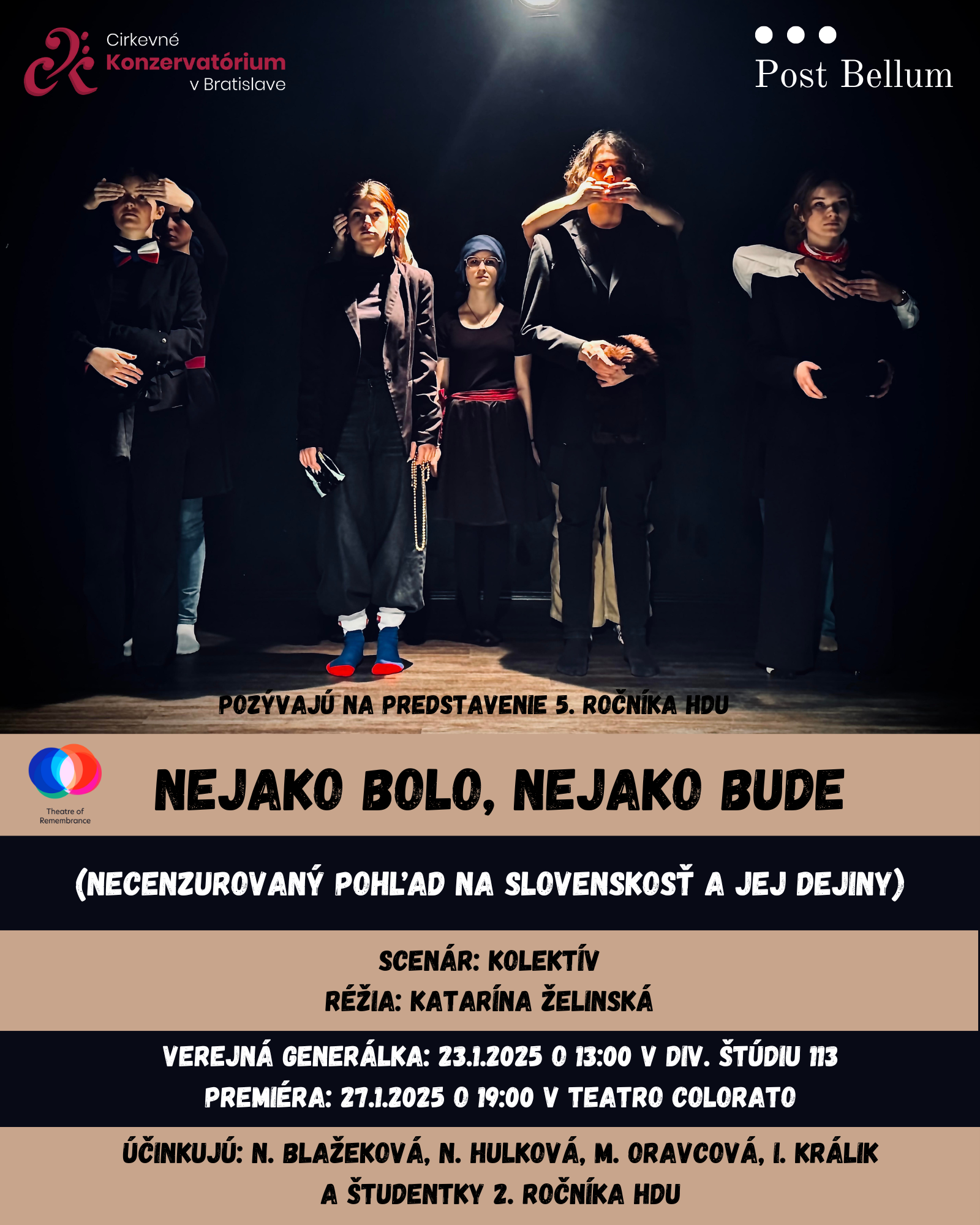 VEREJNÁ GENERÁLKA: 23.1.2025 o 13:00 v Divadelnom štúdiu 113 na Cirkevnom konzervatóriu v Bratislave
