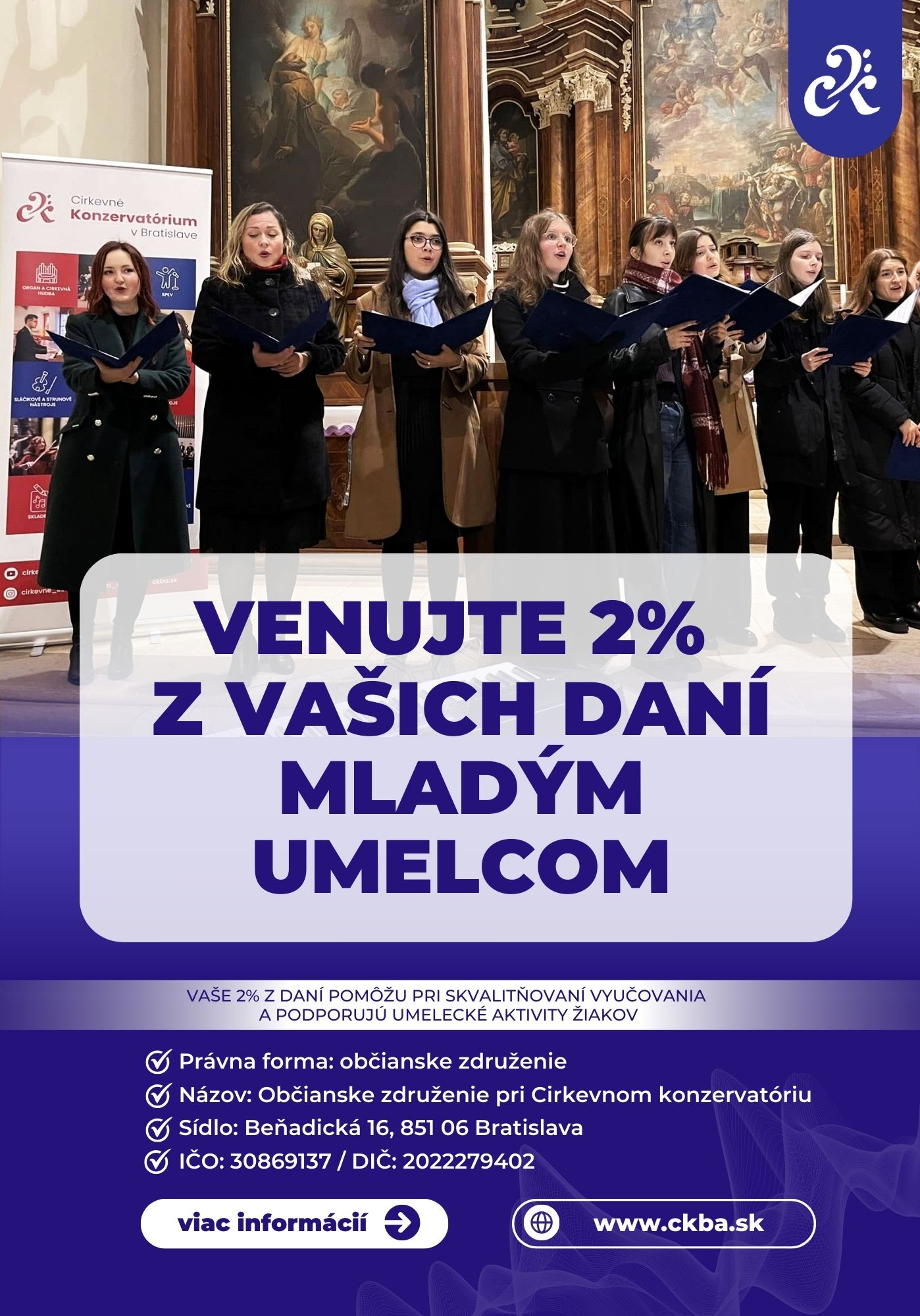 Ak sa rozhodnete 2% z daní poukázať inde a napriek tomu chcete podporiť Cirkevné konzervatórium,